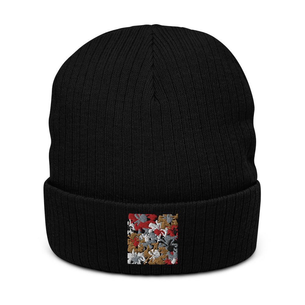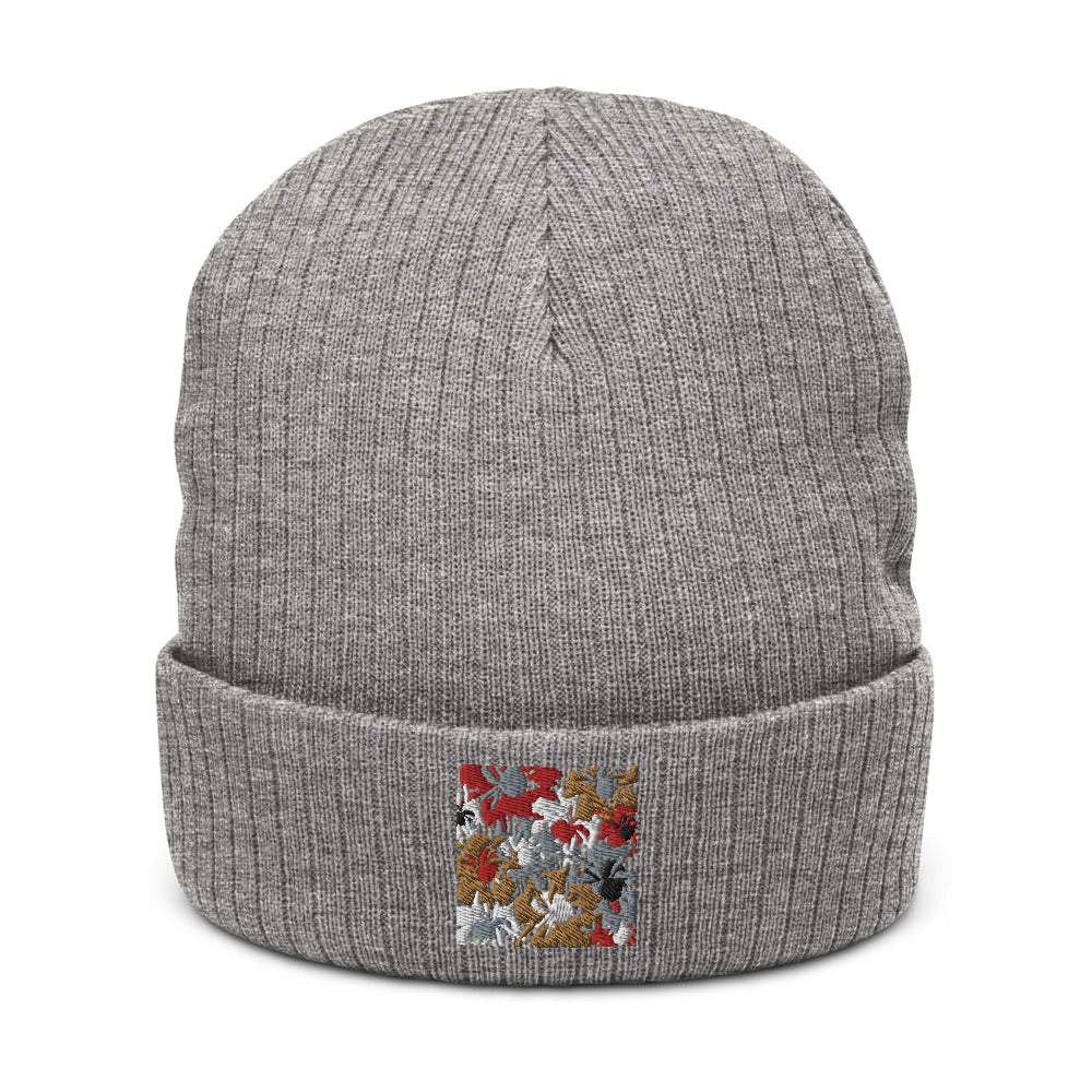Abstract Blooms: Recycled cuffed beanie