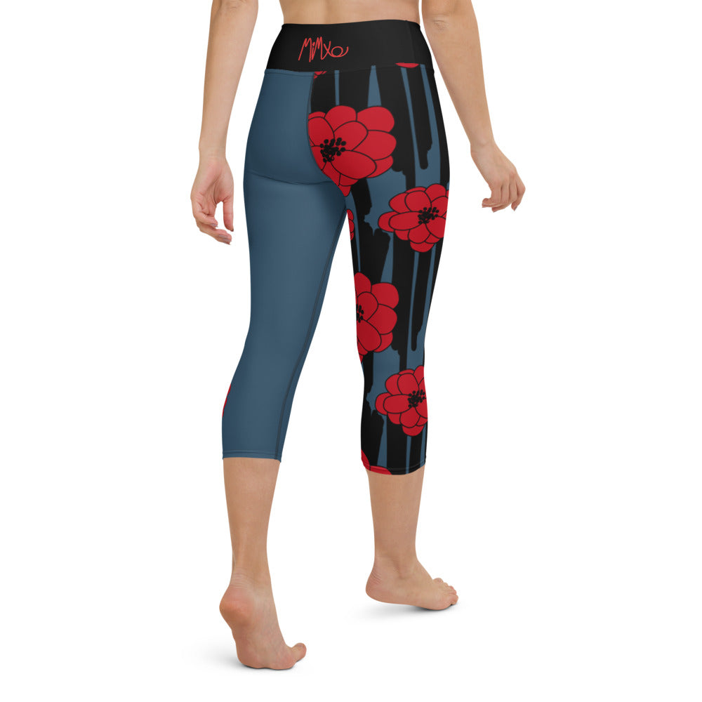 Big Bold Blooms Collection: Red, Black, and Blue High-Waisted Yoga Capri Leggings