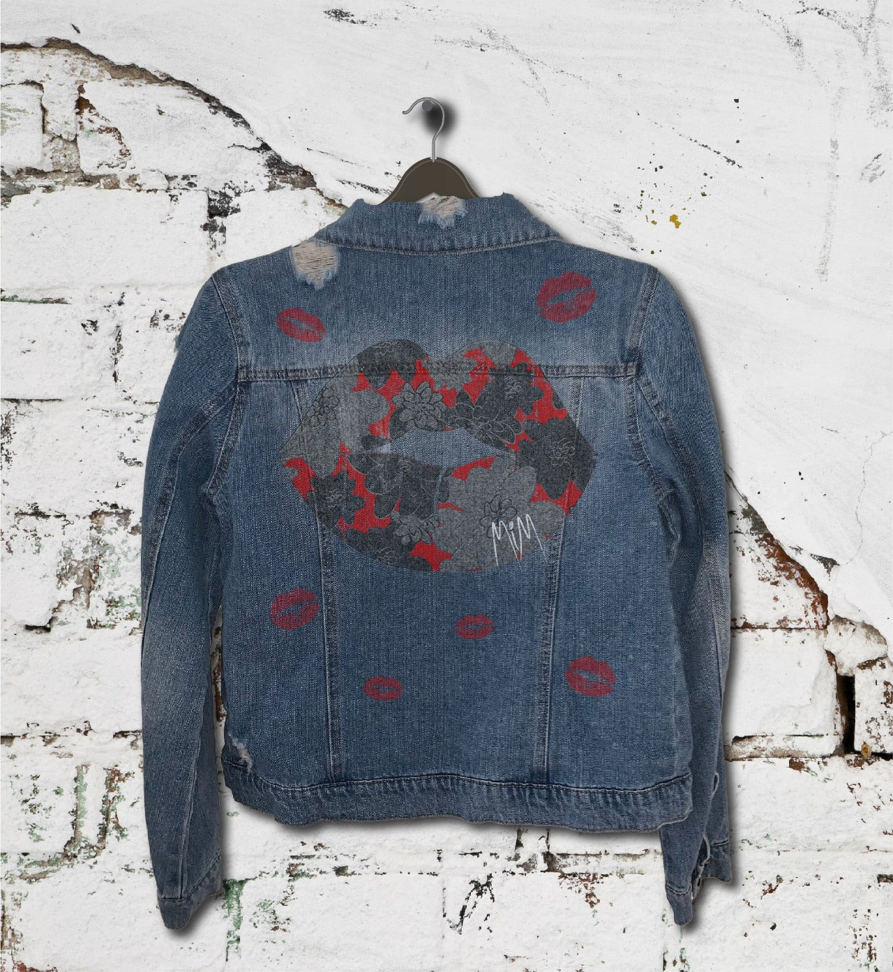 Kiss It Collection: Kiss Dem Lips - Hand-Painted on Distressed Denim
