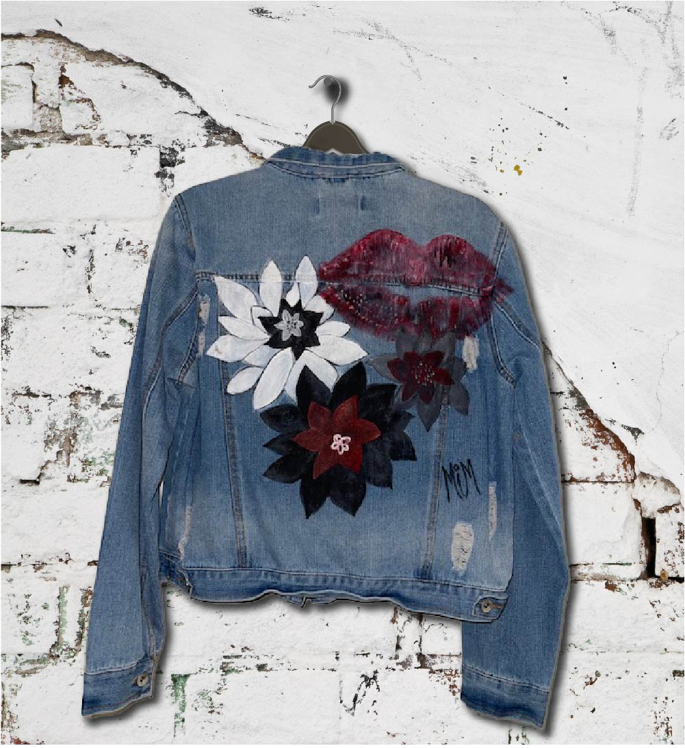Kiss It Collection: Lips-n-Flowers Collage - Hand-Painted on Distressed Denim
